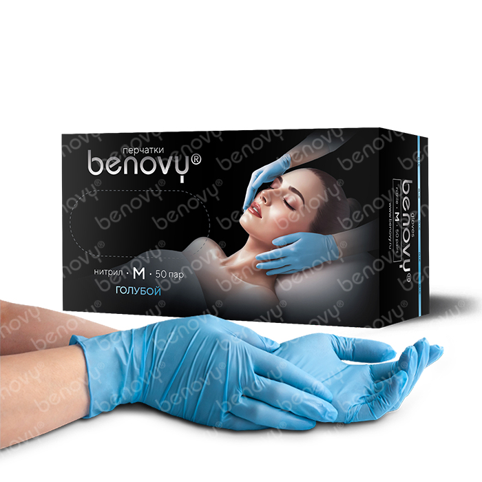 Перчатки нитриловые одноразовые «BENOVY», ГОЛУБЫЕ, 50 пар/уп – купить за 500 ₽ | Мон Ами - расходные материалы для сферы красоты в г. Находке