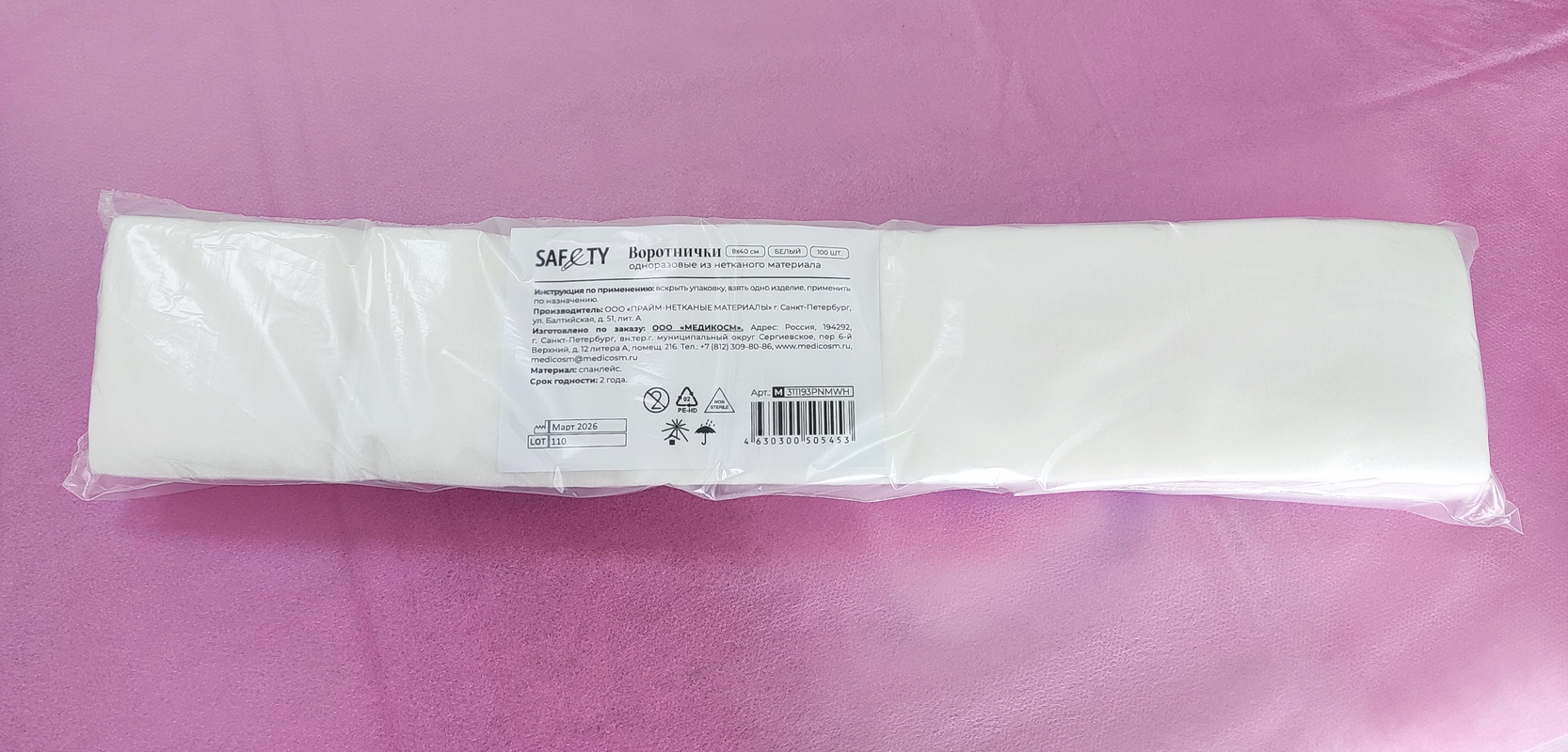 Воротнички СЕЙФИТИ 8х40 см, белые, спанлейс, 40г/м2,100 шт/уп – купить за 165 ₽ | Мон Ами - расходные материалы для сферы красоты в г. Находке
